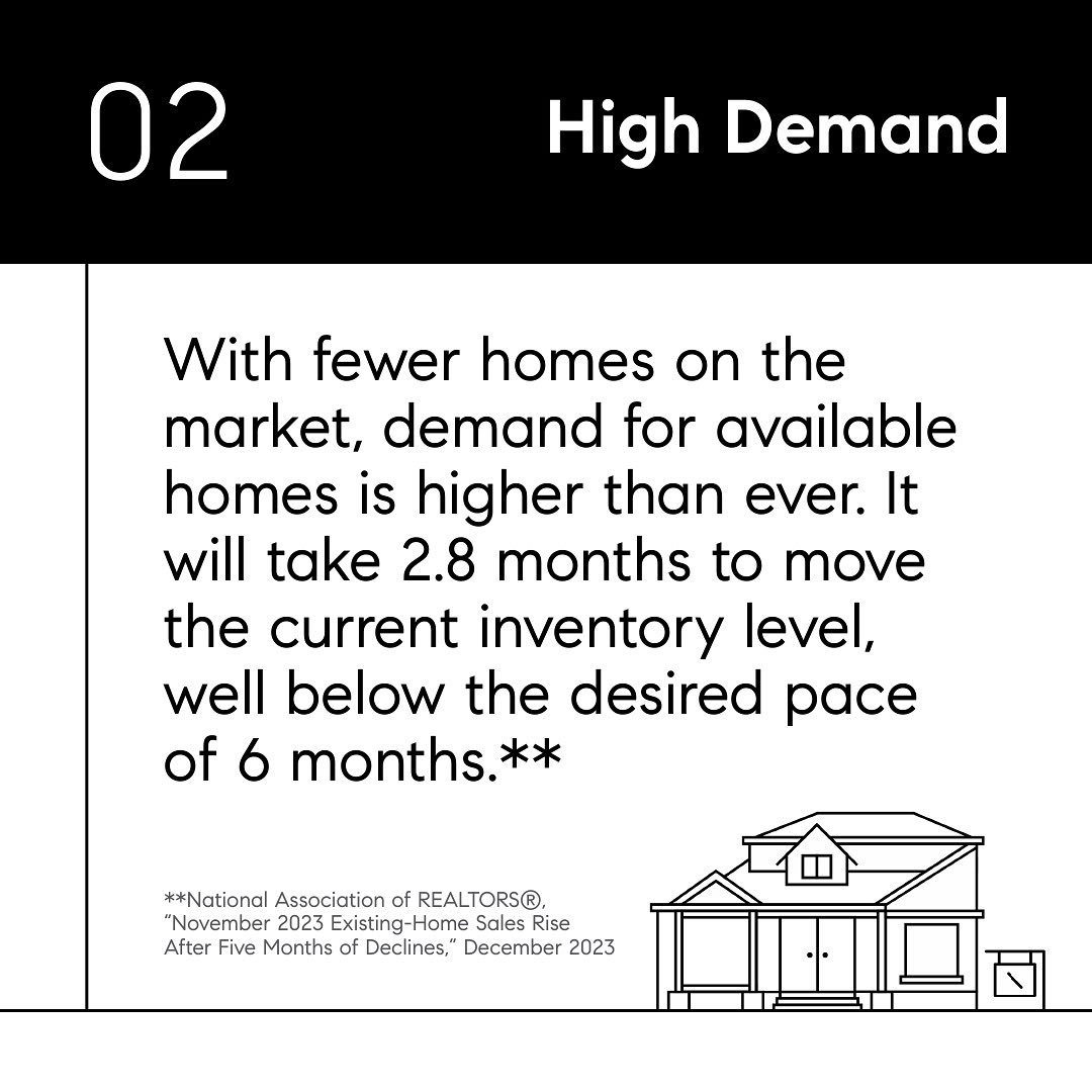 With fewer homes on the market, demand for available homes is higher than ever. It will take 2.8 months to move the current inventory level, well below the desired pace of 6 months.**