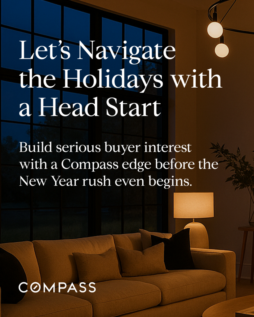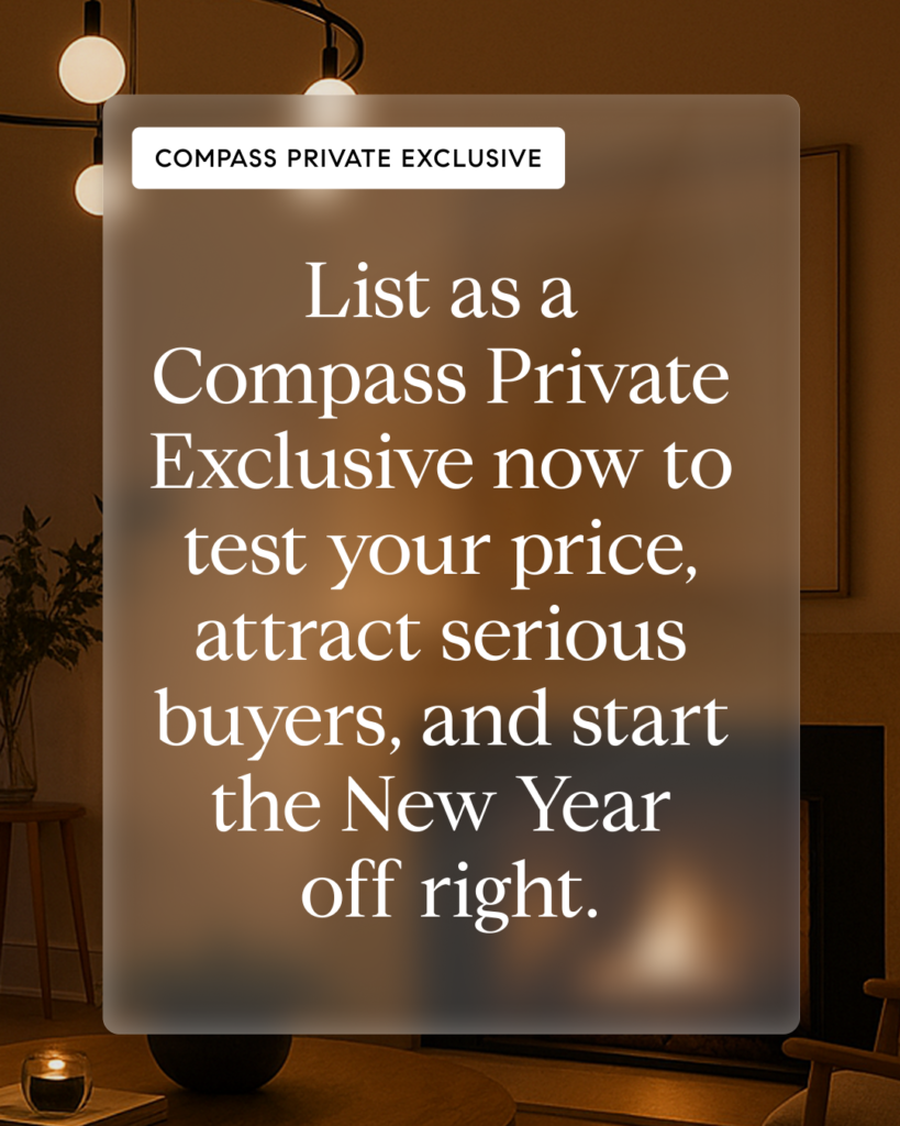 Let’s navigate the holidays with a head start. Build serious buyer interest with a Compass edge before the New Year rush even begins. List as a Compass Private Exclusive now to test your price, attract serious buyers, and start the New Year off right.